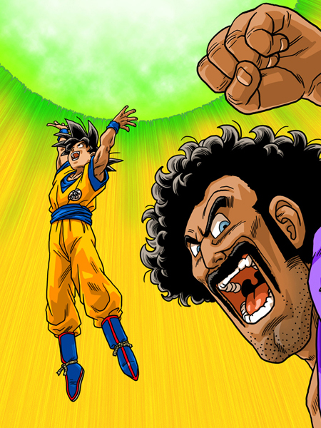 Esta vez el mensaje va acompañado de un dibujo de Mister Satán y Son Gokuh, el cual está formando la Genkidama (en relación al vídeo publicado en nuestras actualizaciones hace unos días para apoyar a Japón formando una Genkidama).